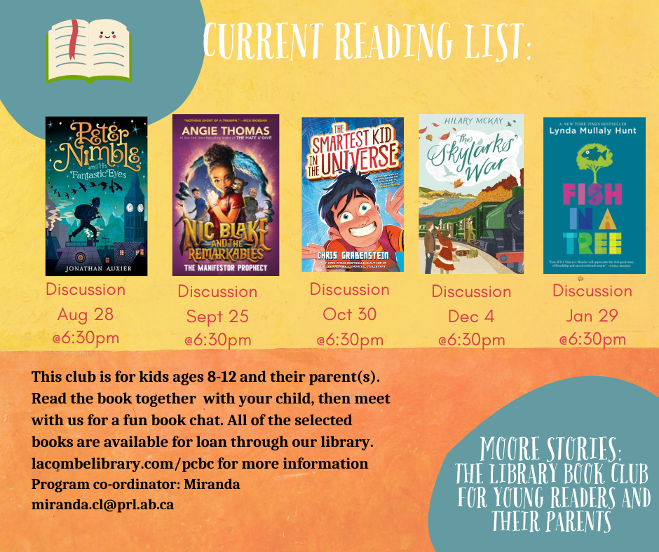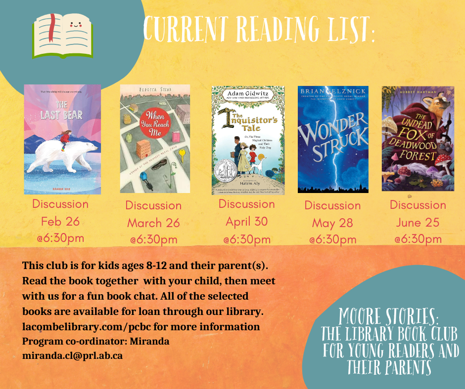 Participants (adults and kids) can choose to read the selected books on their own or parents can read aloud to their kid(s), whatever works best for your family! Looking for a copy of the monthly book- let us know and we will order them in on your library account.